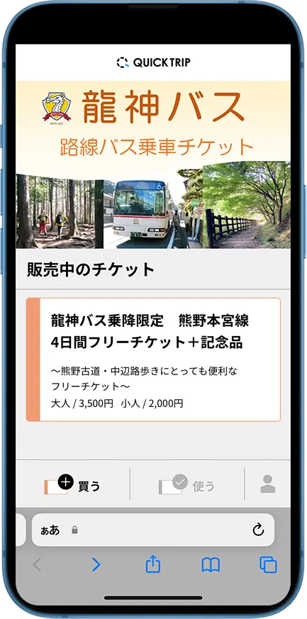 - 本チケットは龍神バス(熊野本宮線)でのみ利用可能です。