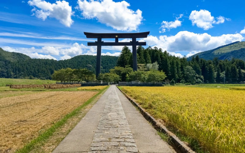 かつて熊野本宮大社が建っていた大斎原。神が舞い降りたという言い伝えがあり、パワースポットとして今も健在しています。大鳥居は圧巻。