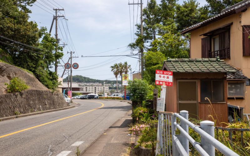 かつて牛の鼻のような岩穴があったことから付けられた地名。「熊野詣紀行」の挿絵に描かれたほどで、今も海沿いの景色が美しい。